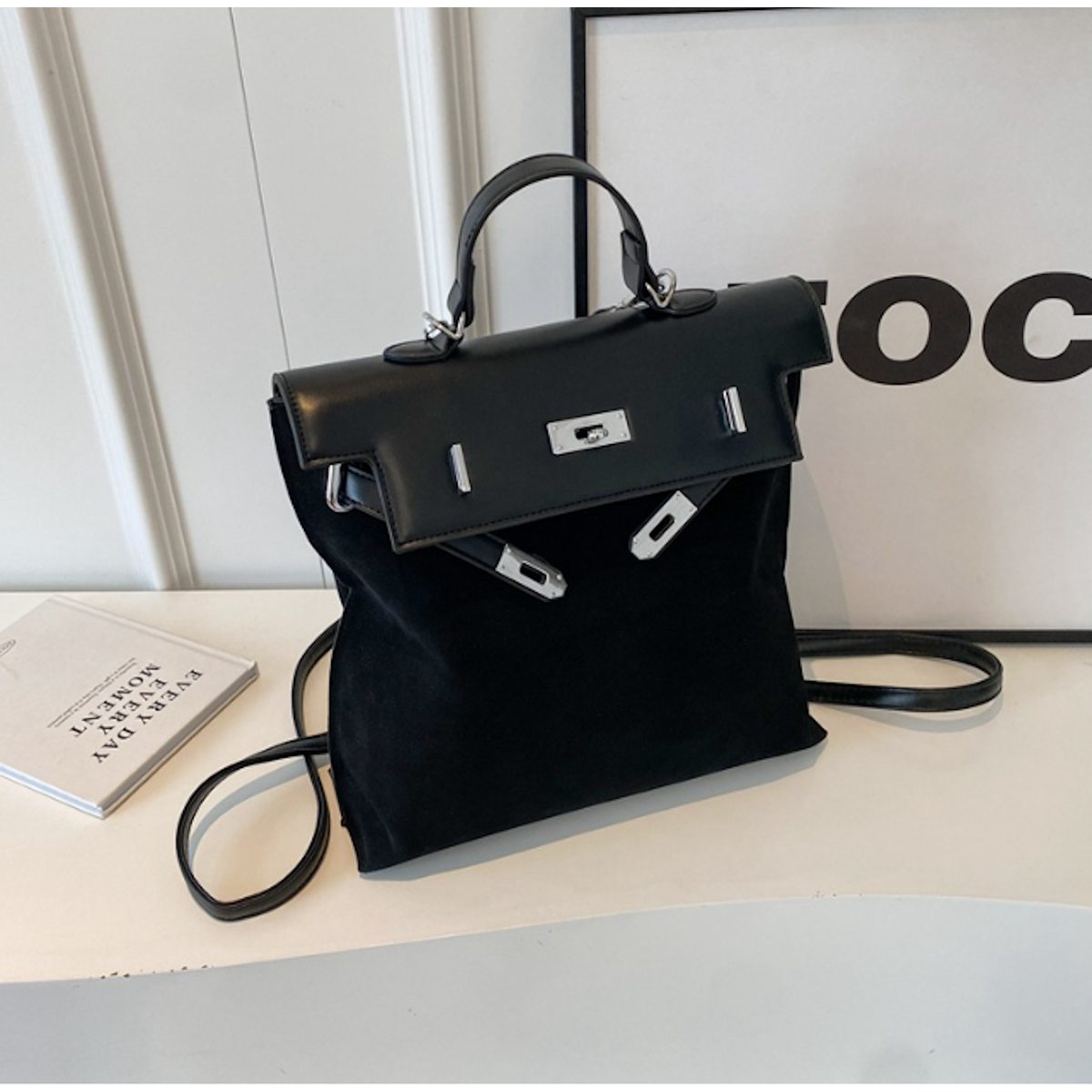 Der doppelte Verschluss – Klappe mit Metallverschluss und zusätzlicher Reißverschluss – sorgt für Sicherheit. Zwei verstellbare, abnehmbare Schultergurte ermöglichen es, den Rucksack im Handumdrehen in eine Umhängetasche zu verwandeln.